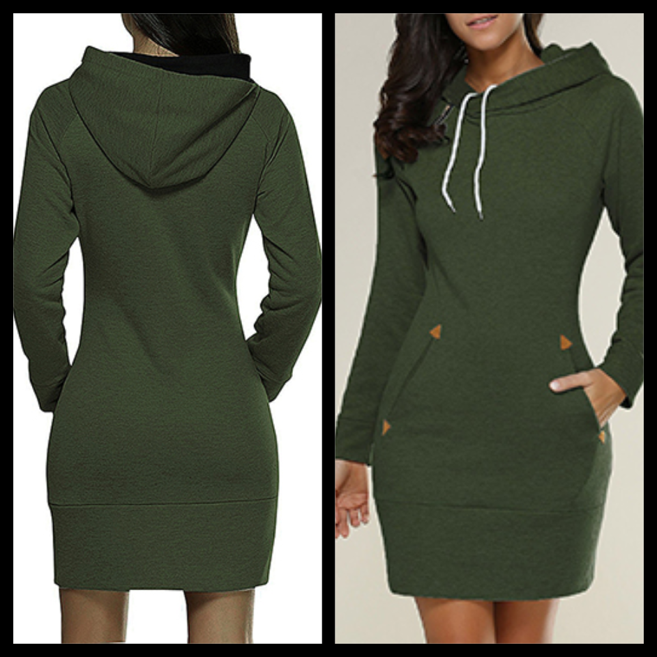 Great for the Fall and Winter Season Plus Size: Sweater Hoodie Mini Dress Dark Green