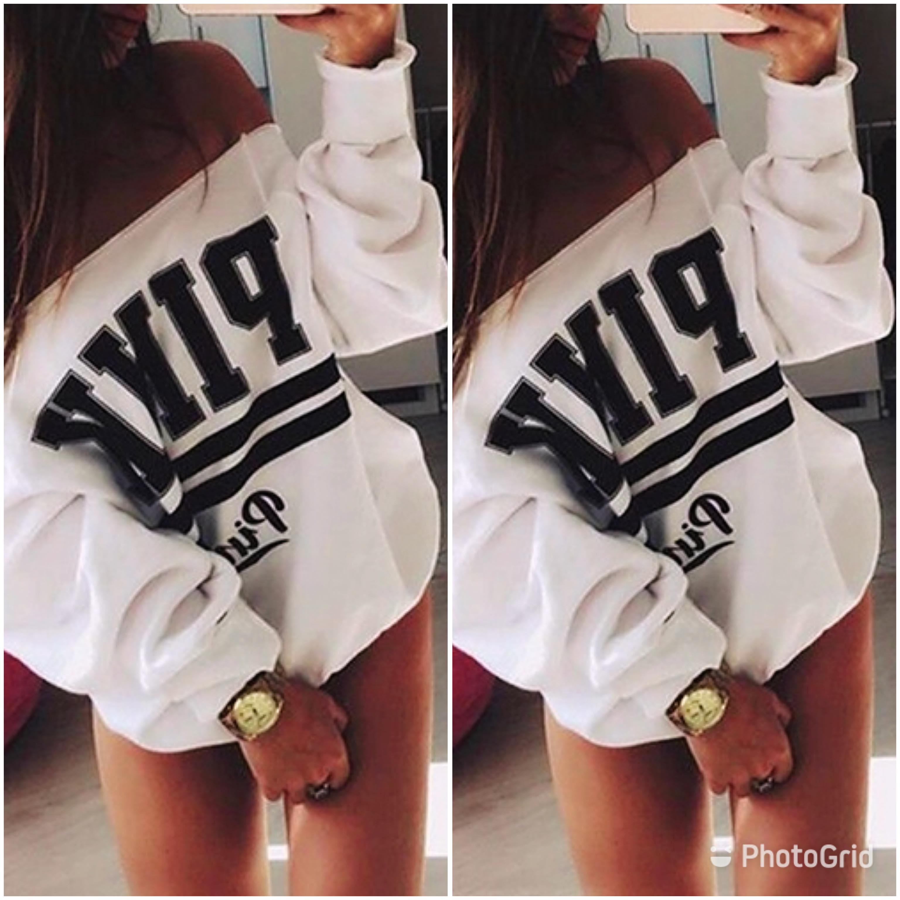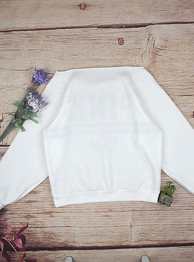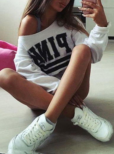 Women's Off Shoulder Sweatshirt - White with Black Lettering