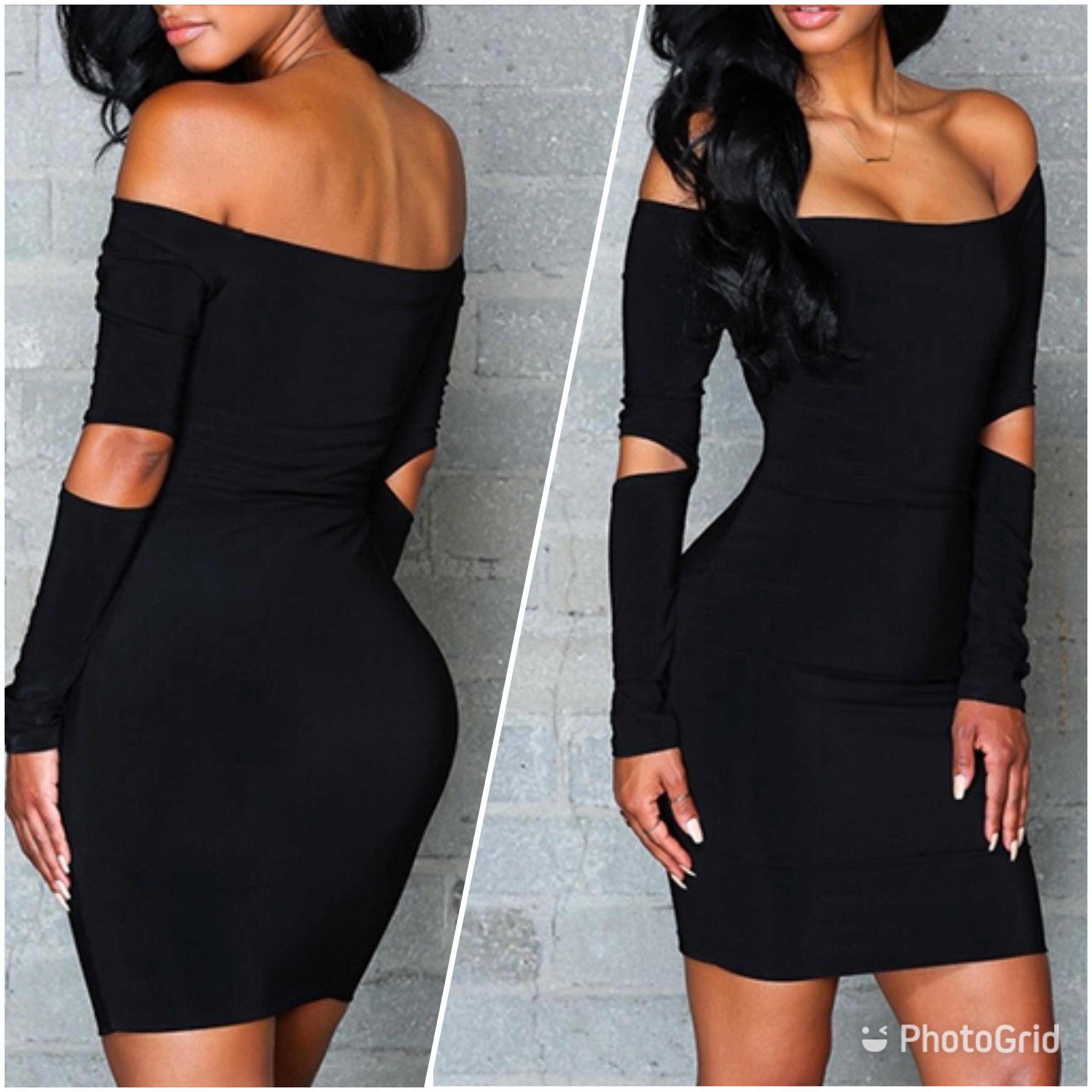 Women's Close Fitting Off Shoulder Dress - Cut Out Sleeves