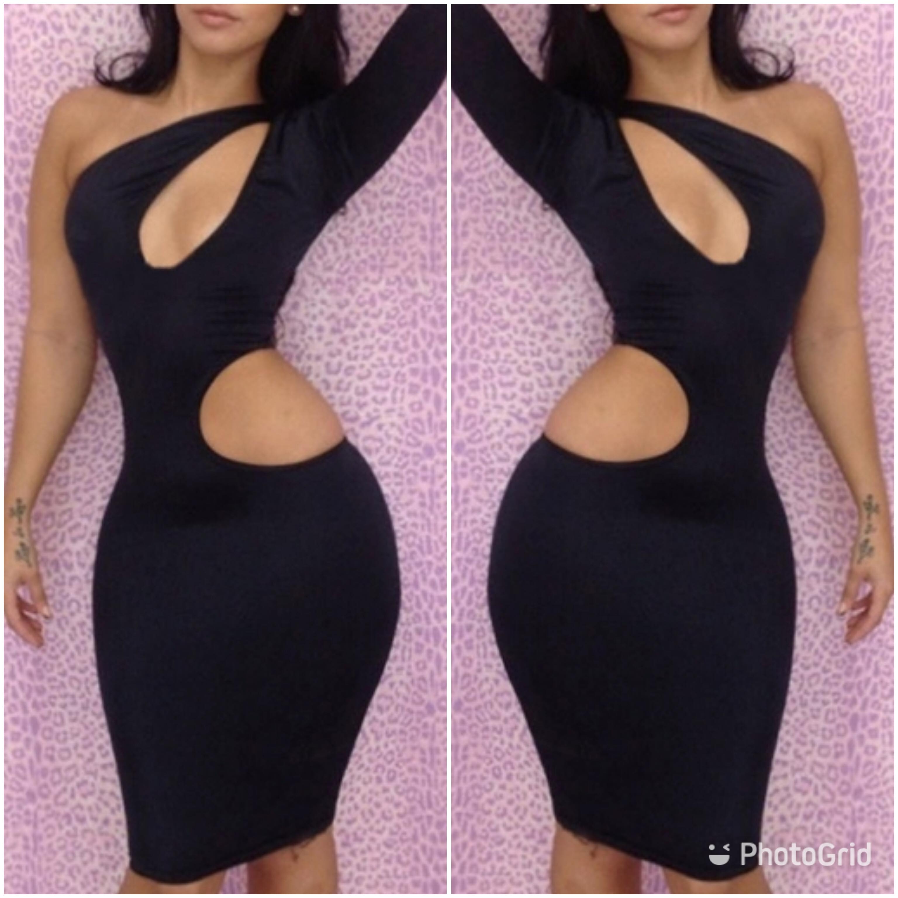 Sexy One Shoulder Body Conscious Stretch Knit Dress - Long Sleeve