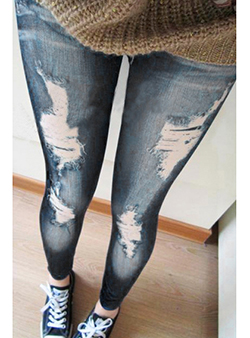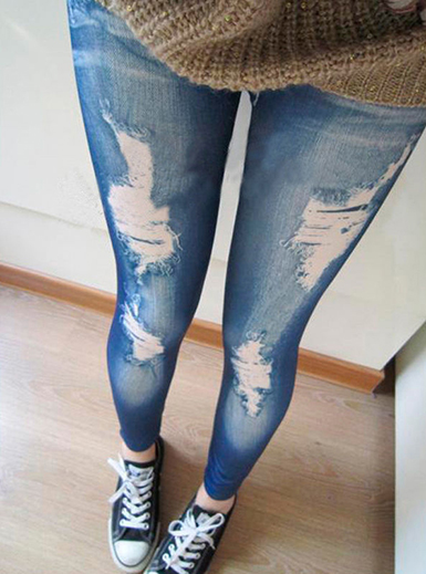 Women's Skinny Leggings - Distressed Denim